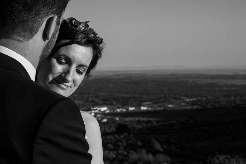 Esta historia transcurrió muy cerca de Trujillo (Cáceres). El lugar de la boda fue la bodega Las Granadas Coronadas, un enclave increíble en el corazón de Extremadura con unas vistas espectaculares.